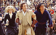 If there is one thing that really brings out the hives in ultra-sensitive intellectuals these days, it is the spectre of cultural appropriation. When Quentin Tarantino raids the archive of Asian action movies for Kill Bill (2003), he is decried in some quarters as a white, American imperialist colonising and evacuating other people's traditions for the sake of his own insidious, omnivorous, capitalistic ends. One of the problems with this holier-than-thou argument is that no tradition is pure to begin with – certainly none of the mix-and-match genres that drive production in a place like Hong Kong. Like crazes in popular music, filmic forms borrow elements from all over. And in the patchwork that results, it is frequently impossible to tell the authentically local touches from the ersatz, borrowed ones. It precisely in the midst of such delightful confusion that popular culture moves forward. Such thoughts inevitably accompany the viewing of a most surprising and wondrous object, the latest version of Jules Verne's Around the World in 80 Days. Frank Coraci is credited as a director, but the true auteur of this international co-production is Walden Media, a multimedia company "principally engaged in telecommunications and media, natural resources, transportation, real estate, sports and entertainment". Does that sound ideologically scary? If so, the film itself presents the light-hearted flipside to any paranoid conspiracy theory of world domination. A heady mixture of Disney-style magical adventure, cheeky romance and childlike 'nonsense comedy' (a sturdy Hong Kong genre), it is also – as a visiting scholar from a Hong Kong university informed me rhapsodically at the end of the preview screening – a very savvy movie about globalised, transnational entertainment. After all, Arnold Schwarzenegger has a cameo as Prince Hapi of Turkey. Arnie's commendably silly contribution is only the tip of the iceberg. The before-his-time inventor Phileas Fogg (Steve Coogan) has by his side a righteous thief, Passepartout, played by the nimble, high-spirited Jackie Chan. And, happily, Chan brings in his wake not only his legendary associate, Sammo Hung, but also groups of deadly fighters known as Tigers and Scorpions – the latter led by the extravagantly deadly General Fang (Karen Joy Morris, aka Karen Mok). The giddy whirl of this movie never stops. The American Wilson brothers, Luke and Owen, pop up as the Wright brothers. Fogg's other travelling companion, Monique (Cécile de France), introduces jokes about French art history. Since the political opposition to the entire adventure is British in origin, actors including Jim Broadbent and Ewen Bremner provide some rousing music-hall-style histrionics. There are elaborate gags about world monuments from the Great Wall of China to the Tower of London. The film, with its deliberately artificial, twinkling digital effects, places any suitably receptive viewer into a childlike state of innocent, awestruck bliss. Almost every daring, heroic gesture in the film leads to much burlesque bashing into walls, statues and carts. Insistent jokes about bodily functions manage to pull up just short of total bad taste, and obsessive references to cross-dressing mock the sexual orientations of the main characters. Ultimately, Around the World in 80 Days evoked for me, in a surreal way, a version of Kill Bill without the gory ultra-violence. Just as Uma Thurman in that film could stride through any airport in the world with her lethal sword entirely visible, here the imperial adventure is achieved in an unfettered (albeit comically bumpy) motion via trains, carriages and a balloon. Has the geo-political globe been shrunk to fit the tidy clichés of mainstream entertainment? On the contrary, this movie opens up a fantasy that feels as if it could expand forever. MORE Jackie Chan: Jackie Chan's First Strike, Rumble in the Bronx, Shanghai Noon, Shanghai Knights, The Medallion MORE Coraci: The Wedding Singer © Adrian Martin August 2004 |