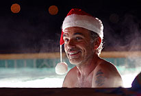 Team America: World Police (2004) has great fun with a standard movie cliché: the lonely, melancholic drunkard who stumbles out of a bar and vomits in an alley. Bad Santa begins with such a scene, and the destiny of this anti-hero, Willie (Billy Bob Thornton), slides downhill from there. There is a grim, militantly tasteless amusement-factor in gross-out movies that mock children's entertainment. Bobcat Goldthwait's bizarre Shakes the Clown (1991) set the bar in this little genre as surely as Nick Giannopoulos' The Wannabes (2003) constituted its nadir. Now Terry Zwigoff (Crumb [1994]) has a crack, with decidedly mixed results. Bad Santa is quite a mess. The plot never really flows, and the larger-than-life characters are awkwardly stuck into its supposed logic. For example, Sue (Lauren Graham from television's Gilmore Girls) is a spunky, semi-alcoholic, sexually perverse gal who makes a fair match for the decrepit Willie (who, in another, disconnected plot strand, is rather fond of performing anal sex on obese, black women). But it is only a single, out-of-nowhere line from Sue ("I really like kids") that much later ties up a dangling story line. The same goes double for the crime element of the narrative. Willie reluctantly plays Santa each year in a different city for the sake of some grand safe-robbing committed with his elf accomplice, Marcus (Tony Cox). When the corrupt store detective Gin (stand-up comedian Bernie Mac) gets on the trail, the violence that ensues shows how wobbly Zwigoff is when straddling that uncertain zone between drama and humour. Like Paul Morrissey, Zwigoff aims for a caustic mixture of stylistic flatness, a highly detailed account of low-lives, and an odd kind of poignancy resulting from a no-hoper's grasp for a little redemption. In this case, a lot hinges on Willie's slowly evolving friendship with Thurman (Brett Kelly), a child with a severe lack of self-esteem. Sadly, this film is a disappointment after Zwigoff's flawed but endearing Ghost World (2001). There are some wonderfully wicked jokes, plus great performances from Thornton and Cox. But it all just dribbles away without ever finding its level. other Santas: The Hebrew Hammer, Santa Claus © Adrian Martin November 2004 |
