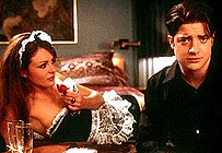 Critics sometimes get carried away when they hail – or lament – the ascension of pure spectacle over old-fashioned storytelling values in today's mainstream entertainment. The truth is that even the most frivolous piece of Hollywood eye-candy still tries to keep a firm grasp on a conventionally well-formed plot. It may not always succeed in doing so, however. Harold Ramis' Bedazzled is a remake of Stanley Donen's 1967 British original – hailing from that brief but glorious Pop Art moment in popular film which also had people howling about the triumph of style over substance. This version has a lot going for it, beginning with a tremendous cast. Brendan Fraser is a gifted comic, willing and able to contort himself in any way, shape or form for a gag. His portrayal of Elliot is a masterpiece of nerdish humiliation. And Elizabeth Hurley is a camp treat as the Devil who persuades Elliot to sign away his soul. But the film is very wonkily structured. At its centre – indeed, probably the chief reason for making it – is the gauntlet of the seven wishes granted to Elliot. Each wish materialises itself in an imaginary, alternative life in which Elliot is rich or sensitive or handsome or ... But the Devil (in a slightly obscure bit of plot logic) either ruins the fantasy for Elliot every time, or perhaps simply lets him learn the vicissitudes of the wishing process for himself. The wish-fulfilment sequences are, in themselves, absolutely hilarious. The pastiches of various pop culture forms – including sports broadcasts and exotic fantasy-adventures – come thick and fast. It is like a magnificent show-stopping routine – fun to watch but damaging to the forward momentum of the movie as a whole. Obviously grappling with this imbalance between pure, zany spectacle and a solid, Hollywood-style plot, Ramis shaves the seven wishes down to five. Groundhog Day (1993), the highlight of Ramis' directorial career, also used an alternative-worlds premise and a potentially cumbersome structure of repetition. But that film was charming and ingenious in the way it gradually altered the mood and content of its material so as to create a satisfying arc for its hero. Bedazzled never finds a similar structure. After its introductory section, it plunges into the wishes. Much later, it takes a brief and desultory shot at turning into a horror movie, once the Devil becomes displeased. And very soon after that, give or take a few mechanical plot twists and resolutions, the film is over. In essence, Bedazzled shows the difficulties in changing over, mid-film, from an outrageously cartoonish plot to a romantic comedy. It's not an impossible transition but, for starters, characters have a different weight or reality depending on which kind of genre they are supporting. Ramis has a particularly hard time making Elliot's heartthrob, Alison (Frances O'Connor), into a coherent, likeable person, and rendering poignant the prospect of her ever getting together with Elliot. If this signals a new kind of moviemaking, it can only be a species of product aimed squarely at the burgeoning DVD market – with its technology that allows consumers to easily enjoy their own personal, anthology selections of favourite film scenes. Bedazzled doesn't hang together as an entire movie, but it does have some priceless moments of comic excess. MORE Ramis: Analyze This, Analyze That, Multiplicity © Adrian Martin January 2001 |