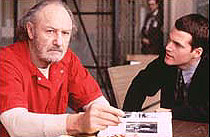 Movies adapted from the potboilers of John Grisham constitute a fearsome territory where very few serious reviewers dare to tread. These films (The Firm [1993], The Client [1994]) are sheer, instantly forgettable pap. But the audience of people who enjoyed the novels and want to see the screen versions is assured, no matter what dudes like me say. On the Grisham conveyor belt, The Chamber is – as per usual – a lousy film. Its popcorn quality comes from the killing fact that, on the dramatic plane, it resembles a banal telemovie, albeit with handsome production values. But not even the once dazzling director James Foley (Reckless [1984]) can invest any energy or subtlety into this formulaic dirge. Social and political issues become the mere pretext for supposedly thrilling plot moves in a Grisham-derived film. Here, as in the dire Ghosts of Mississippi (1996), the key issue is white supremacism. Unlovely old Sam (Gene Hackman) is on trial for murderous racial crimes. Green young lawyer Adam (Chris O'Donnell) takes on the unpopular job of defending Sam – a task further complicated by his own family's past ties with racism and its ugly consequences. Much of the film is devoted to sessions, staged through a prison grill, between Sam and Adam. At first Sam comes on like Hannibal Lecter in The Silence of the Lambs (1991): the mad genius who instantly intuits and preys upon Adam's every Achilles heel. Soon he modulates into an older version of Sean Penn's character in Dead Man Walking (1995): the ambiguous "bad guy" who is perhaps worthy of some redemption. Whatever happened to the abundant inspiration behind brilliant courtroom dramas like Otto Preminger's Anatomy of a Murder (1959)? Almost all ambiguities of law, ethics, truth and performance have been expunged from contemporary exercises in this genre. The courtroom action is minimal, pared away for the sake of the hero's dreary journey of self-discovery as he explores his family's past. The actors cannot save this doomed project. O'Donnell is a bland leading man who projects little drive, charisma or inner torment. Hackman puts in a listless performance, far from the complex heights of villainy he achieved in Eastwood's Unforgiven (1992). And Faye Dunaway has a thankless role as Adam's Aunt Lee in the pale melodrama of personal identity that takes up far too much of the film's running time. MORE Foley: The Corruptor, Fear, Glengarry Glen Ross At Close Range © Adrian Martin May 1997 |