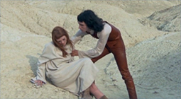 La cicatrice intérieure: psychodrama (Nico collapsing and wailing in despair as Philippe Garrel strides on, head down, into the white void); “ultimate trip-film” (Olivier Père); song of Earth (Henri Langlois) and of the four primal elements; distended music-clip (Nico’s Desertshore serving here as Leonard Cohen served Werner Herzog’s Fata Morgana, 1971, punctuating the silences and the windblown atmos); precursor of long-shot/long-take Slow Cinema; crack-up of the Christian Holy Family (as already in Garrel’s Le Révélateur, 1968); palimpsest of the esoteric, the occult, the medieval, the Holy Grail and Aleister Crowley … At the juncture of what Serge Daney called “all the adventures” of the post-’68 era: travel, drugs, mysticism, “the couple” … encapsulated in Garrel’s association with the loose Zanzibar group (1968-1970) via the financial largesse of inheritor (and later militant feminist) Sylvina Boissonnas. (1) In retrospect, La cicatrice intérieure mingles its sands with a specific era of Desert Cinema: not only Herzog, Kenneth Anger among the pyramids, or Alejandro Jodorowsky’s psychedelic Western El Topo (1970), these figures in a landscape also resemble Dennis Hopper and comrades in the Taos of The Last Movie (1970) – and, indeed, a figure on the edge of the Zanzibar scene, François de Menil (who had made a 1969 music clip with Nico and Iggy Pop), would himself head to Taos and recruit Hopper for Crush Proof (1972), before finally chucking in cinema for an architectural career. The same generative phantasm that propelled Hopper and so many countercultural contemporaries (including Donald Cammell & Nicolas Roeg of Performance [1970]) into frenetic, frame-splitting montage – the notion of all time lived eternally in a moment, or in the cyclical time of a loop – finds very different expression in Garrel: fundamentally, in the sense of a place without precise co-ordinates of time or place, an area in which Garrel’s determined walk-away from Nico reveals itself to be one of the film’s many circles … “In Garrel, there’s a feeling of time inside the shot, but not outside it”, commented Jean-Claude Biette. (2) In 1968, two years before the shooting of La cicatrice intérieure, and at the very dawn of the brief Zanzibar conflagration (see also Deux fois [1971] by Jackie Raynal for one its most brilliant outbursts), Garrel collaborated with Serge Bard, Patrick Deval and Daniel Pommereulle on “Four Manifestos for a Violent Cinema”, published in Alain Jouffroy’s glossy-radical art magazine Opus International. Garrel begins by evoking a cinematic act in which both maker and viewer should (must) be emptied of whatever preconceived self they came with. Cinema of the clean slate, of the return to degree zero (and hence minimalist) – a rhetoric so prevalent in those years, in so many fields. At the outset, this will (naturally) necessitate the militant refusal of “all anecdotal and psychological dramaturgy” – everything that falls under the rubric of mere recollection, presupposition, habit and convention. So: bodies/figures in a landscape, scraps of archetypal situation (naked Pierre Clémenti arriving by boat to the shore of who-knows-where), fleeting hints of an intrigue (a relationship breakdown, a child on the ice … ), stagings of a Ring of Fire or a sword sharpened on an alchemical stone, offered to the brooding Eternal Feminine Goddess of Nico … This is the core of Garrel’s personal proposal for a Violent Cinema, an idea relating less to content (Jodorowsky-style) than to an Artaud-like action vacillating between seduction and assault: Film cannot be evaluated according to spatio-temporal criteria, since any recollection, whether at the stage of reception or conception, is excluded. The new criterion that then appears to value a film is transparency. The spectator is assimilated – voluntarily, or by force – by the author who leads them into a waking dream that goes beyond their individual biographical traumas so that they can grasp their own condition. Identification ceases when the projection ends and the spectator emerges from the mirage, now obliged to redefine themselves – to follow, or not, changes in their behaviour, as they would after a dream. What we call thought is axial, contagious and evolutionary. According to this ideal, cinema constitutes a new mode of communication that proceeds by violating our personalities. (3) La
