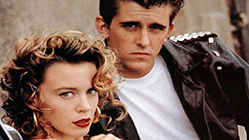 Girl on Film Every female actor in the world confronts, is crushed by, or manages to work with – sometimes brilliantly – the ledger of cultural stereotypes available for them to play, depending on their size, age, looks, disposition at any given moment of their career. For pop idols, this encounter with the Hall of Stereotypes instantly becomes a much tougher and narrower gauntlet. On this level – where stereotypes get mystified up to archetypes – the prospects are daunting: one is either a Marilyn figure, a femme fatale, a sweet innocent, a go-getting career gal … Kylie Minogue’s film career is neither extensive nor illustrious. (I shall get that value judgment out of the way immediately.) One can quickly see how she was boxed into predictable female types across her various cameos and featured parts: ass-kicking tough babe in Bio-Dome (1996) or bitchy director in Cut (2000 – where, as a ‘Hilary’ helming a trashy horror film called Hot Blooded, she gets to speak the memorable line: “Everyone’s got their level, and mine is making intelligent family drama”); lovely fairy in Moulin Rouge (2001) – a role that, unsurprisingly, was widely gossiped to be a desperate last-minute add-on, the typical kind of slur that attaches itself to singers-turned-big-screen-actors. In Sample People (2000), it’s her turn to become the femme fatale of film noir – alas, more Jessica Rabbit than Rita Hayworth. (2025 postscript: I wrote this paragraph 10 years before the appearance of Leos Carax’s sublime Holy Motors.) Kylie’s best role is in the already-mostly-forgotten Australian teen movie, The Delinquents (1989) – a compromised work stranded between American pop vitalism, British kitchen-sink naturalism and Aussie laconicism, but certainly a gift to the star. That’s for a reason not necessarily glaringly evident at first blush: this time out, in fact at the very start of her film career, Kylie gets to tackle another of the great female archetypes, Madame Bovary. I came to this flash serendipitously. Back in 1990 when I was assigned to write about the movie on its first release, something in the pre-publicity kept suggesting to me that I should hire Grease (1978) as homework and preparation before the main event. Perhaps it was the hint of Kylie on a path similar to that of another beloved Aussie lass: Olivia Newton-John. For there, in the tantalising spread of publicity pictures, was Kylie debuting in a film seemingly calculated to show off her range (something all pop stars are anxious to do in their crossover to film) by taking her from innocent country schoolgirl to Madonna-ish vamp in black leather, being attacked lustfully at the neck by her guy (Charlie Schlatter). Whatever the flimsy storyline contrived to manoeuvre her from point A (innocence) to B (experience), the film promised to be a knowing vehicle for Kylie – driving from one florid, archetypal movie image to the next. After all, there was also, looming in the picture, her great character name of Lola – activating memories of Marlene Dietrich’s fatally attractive Lola Lola in The Blue Angel (1930), or The Kinks’ gender-perverse “Lola”, or Rainer Werner Fassbinder’s 1982 ‘singer-whore’ Lola (Barbara Sukowa), or Martine Carol in Max Ophüls’ Lola Montès (1955), that early ‘celebrity superstar’ adored and persecuted alike by her endless queue of male admirers. And not to mention that wonderful title: The Delinquents, the perfect, classic teen movie title (taken from the source, Criena Rohan’s respected 1962 novel) with its connotation of rebellion, lawlessness, vice and craziness – promising a summation of the early wave of the genre (Robert Altman made a film of the same name in 1957) and its modern, romantically charged variants, such as Francis Ford Coppola’s The Outsiders (1983) and James Foley’s Reckless (1984). In the event, there was nothing remotely like the sight of vamp Kylie with a hunk at her neck appearing anywhere in The Delinquents – only a girl meekly apologising to her man for “indiscretions” we never see. (Unless, that is, it’s a sin to catch the flu, of which Lola is often guilty.) Nor was there much teen rebellion past a vaguely daring point – an interrupted grope in a public dressing room, the fleeting evocation of Jerry Lee Lewis, an inconsequential riot in a girls’ prison dorm to the strains of “Be Bop A Lula” (Lula/Lola, get it?) – beyond which the film is determined to match Lola up not only with a reformed, tamed Wild One, but an instant child as well, with Little Richard’s “Lucille” now transformed from an anthem of teenage wildlife to a cute, fun song suitable even for young marrieds.But maybe I showed up for that screening in 1990 with the wrong bag of expectations. Another paradigm for viewing the film, one cued by the appearance in it of a poster for Roberto Rossellini’s magnificent Stromboli (1950) with Ingrid Bergman (a remarkable work about the fury and ecstasy of a trapped woman) was fortuitously nourished by the video I actually did manage to watch in place of Grease: Vincente Minnelli’s Hollywood version of Flaubert’s Madame Bovary (1949), one of many film adaptations (others are by Jean Renoir, Claude Chabrol and Manoel de Oliveira, a well as a 2000 British TV version showcasing another Australian, Frances O’Connor). Is The Delinquents better approached, then, as a woman’s melodrama? Like many star vehicles of old (Garbo’s, for instance, or Bette Davis’), it certainly conforms to the convention whereby the maximum of both screen time and dramatic character is invested in the female star – even to the extent of making the supposed male hero a bit of a blank. Kylie proves herself equal to the challenge of this single-minded centring of the film on her good self. The Madame Bovary connection is not exactly arbitrary, as it turns out. Like Bovary (Jennifer Jones) in Minnelli’s telling of that tale, Lola 