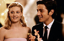 "Where is the Revolution tonight? On the dance floor?" It is rare to hear any political revolution discussed in a mainstream American entertainment – and rarer still to hear it discussed in a musical. But that is what the sequel to Dirty Dancing – which in some countries lost its original subtitle, Havana Nights, and gained a number "2" – is all about. Because this film was so unsuccessful and derided in America, it has scarcely been afforded a release elsewhere. This is a pity because Dirty Dancing 2, while far from perfect, is a highly intriguing object, and its joyous passages of movement, music and colour are best savoured on the big screen. It in fact improves on repeat viewings. Many filmgoers may be unaware that the creative team behind the project is Tarantino's producer Lawrence Bender and the talented writer-director Boaz Yakin (Fresh [1994], Remember the Titans [2000]), who worked on the script. Directing duties are handled by Guy Ferland, who has made several interesting and ambitious films including Telling Lies in America (1997); his staging work here can be superb, and it meshes dynamically with the sometimes very brisk editing by Luis Colina (Another Day in Paradise [1998]) and Scot Richter. Indeed, this is one of the few musicals in recent years where the kinetic editing follows and enhances – rather than obliterating – the rhythms and moves of the dance. This is an ingenious response to the long-mooted prospect of a Dirty Dancing (1987) sequel. As a fan of that film, I am happy to report that what was most novel in it – teenage characters with fierce ethical and political values – is retained and enhanced here. (I also note that what was most weird on the ears in the first film – the modernising of recent but still "period" music – has become exponentially weirder here.) And the touching aspects of the original, especially the depiction of the parent-daughter relations, are still highly affecting. The setting is Cuba on the eve of Castro's revolution, just as Batista is about to be overthrown. The people are discontented, and more than a little contemptuous of the American tourists who blow in and enjoy the good life, such as the family of young Katey (Romolo Garai). But Katey herself is unhappy with her complacent, hypocritical companions, and so gravitates towards the struggling, working class Javier (the superb Diego Luna from Y Tu Mamá También [2001]). Their relationship begins tensely but – in the time-honoured way of the musical genre – a rapprochement is figured out when they learn to combine their respective dance styles in the hope of winning a competition. Dirty Dancing 2 is, on the dramatic plane, not as well constructed or as emotionally strong as the original Dirty Dancing. Many of the same personal and family issues are present, but Garai is not quite as captivating (or, initially, as lovably clunky) as Jennifer Grey. Patrick Swayze is back in a small part as a wise and helpful dance teacher, but one absolutely essential ingredient – the intense sexiness of intimate dancing – is nervously downplayed. This would seem impossible in a film that shows so much Cuban dancing. But the script works overtime to assure us that dance can mean everything – being at one with nature, being anything you want to be – except lovemaking. Nonetheless, the erotic, lyrical charge repressed on the movie's surface returns in intoxicating scenes like the one in which Katey and Javier dance in front of a curtain upon which footage of Katey's parents dancing is projected. But this film has one breathtaking moment that has no equivalent in the original Dirty Dancing. That movie built up to an impossible, dexterous movement (the leap) on the dance floor. Here that highpoint is dramatically interrupted – by the boisterous revolution happening out on the streets (a device reminiscent of Bertolucci's The Dreamers [2003]). Where does a Hollywood entertainment go from there? This one, predictably, loses its nerve and falls apart. The film cannot bring itself to support Socialism at its most utopian summit of possibility and collective hope. The hit song from the original is reprised on the soundtrack to quickly remind us: all this sexy, political intoxication may have been the "time of your life", but now it's over, and dull, white-bread American reality must recommence. (Also elided in this process is, of course, any hint of the US Foreign Policy toward Cuba under Castro to come.) Happily, the memory of the senses is not so easily quelled – and films like Dirty Dancing: Havana Nights exist more for the thrills along the way than for their final, dreary destination. © Adrian Martin May 2004 |