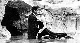 But the most striking point of commonality between La Dolce Vita and Less Than Zero is that both, finally, are rather nostalgic – and quietly but surely moralistic (as, indeed, is Lyotard). Both Fellini and Ellis present the fragments or ruins of a broken world, and dream wistfully of a time when the pieces were once all together. A case in point: sex may be everywhere in La Dolce Vita, but it certainly doesn't seem like much fun. Yet, as Sam Rohdie has pointed out, all Fellini's films run on a rich paradox. He flagrantly condemns the illusions, corruptions and empty dreams of the modern world, yet his own style boundlessly celebrates artifice, fantasy and a merry loss of meaning. Corruption has a bittersweet taste – ultimately more sweet than bitter. But by the time of Ginger and Fred (1986), this tension which is at the heart of Fellini's best films has gone rather slack, and the thundering anti-modernity moralism has well and truly trumped the let's-party spirit. La Dolce Vita is a film stuffed with engaging paradoxes like these. It is long and sometimes trying but, as Geoffrey Nowell-Smith once commented: "[A]s a film about the difficulties of living, of making sense of living, and of making a narrative as way of making sense of living, it has a certain depth and even grandeur." (2) It is certainly a highpoint of the great, canonical art-film tradition as we came to know it until the World Cinema revolutions of the '90s. MORE Fellini: Amarcord, Juliet of the Spirits, La Strada, Orchestra Rehearsal © Adrian Martin April 1991 1. Critique no. 419, April 1981. back 2. Monthly Film Bulletin, no. 645, October 1987. |