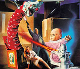 B movie producer-director Charles Band made a bizarre attempt to enter the field of family entertainment with Remote (1993), a Home Alone-style caper for kids. Band returns to the SF-horror chamber of his exploitation cinema empire with Dollman vs. The Demonic Toys, featuring laconic character actor Tim Thomerson (Future Cop [1985]) as the miniature Dollman and Tracy Scoggins (from TV's Lois and Clark) as his life-size cop buddy. Band redefines the direct-to-video quickie with this effort. Much of a very short (fifty-seven minute) feature is taken up with clips from three previous, completely unrelated Band productions – Dollman (1991), Demonic Toys (1991) and Bad Channels (1992). Between these crazy, rapid-fire digests of various plots and fictional worlds, the film contrives a mind-boggling way to bring together a disparate array of SF, soft porn, comedy and horror elements. As in his best films, Band is able to achieve stylish effects of pulp poetry from even the cheapest, tackiest special effects – even if, these days, he is overkeen to protect himself with a large gesture of camp self-parody. Still, Dollman vs. The Demonic Toys is a pop oddity notable for its spontaneous, unselfconscious re-creation of narrative games and conceits more usually found in arthouse cinema and modernist literature. ANOTHER surreal meeting: Alien vs. Predator © Adrian Martin June 1994 |