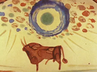 Picasso (and his connection to the geographic region) picks up a “sun” (soleil) theme as a way to switch over