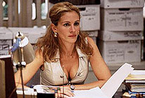 Erin Brockovich (Julia Roberts) takes injustice from no one. After losing – unfairly in her view as in ours – a court case involving a freak car accident, Brockovich decides to visit her anger upon the lawyer who represented her, Ed (Albert Finney). She moves into his office, starts working and demands a wage. Brockovich's true destiny swims into focus when clues fall her way pointing to a massive case of corporate injustice. The poisoning of local citizens seems inescapably linked to the chemical operations of a nearby factory. Brockovich is able to tease out the facts partly through her human touch – those in dire need instinctively trust her immediately. American films like EDtv (1999), and Australian movies including The Castle (1997) and The Wog Boy (2000), strain to whip up a populist ambience – usually via tales of the triumph of an ordinary underdog against a malevolent, impersonal system. Erin Brockovich, based on a true story, is a supreme monument to populism – and never once does it seem cynical or opportunistic. Cinema has recently taken a keen interest in maddening, impossible women of various stripes – especially politically fanatical ones, like those played by Judy Davis in Children of the Revolution (1996) and Lily Taylor in I Shot Andy Warhol (1996). Like them, Brockovich is obsessed, and will sacrifice any part of her private life (like romance or family) for her righteous cause. Even for those who work with her, she is a bundle – demanding, pushy, undiplomatic, quick to think the worst of anyone and say it aloud. Yet is it exactly these qualities which make her politically effective, and a delight to observe. Brockovich has a special flair for hurling inventive insults, and Roberts makes the most of the role's foul-mouthed requirements. Modern American cinema has often offered the somewhat embarrassing spectacle of acclaimed actresses (such as Jessica Lange and Sally Field) in full, histrionic mode as salt-of-the-earth, working class heroines – as if it were a species of drag. Roberts quickly overcomes any initial audience resistance to her incarnation of the brassy, trashily feminine Brockovich. The performance is a highpoint in Roberts' career because it transforms the star, in a stroke, into a proud hero of the people. Finney – an inspired, surprising casting choice – is her perfect foil: harried, cautious, reluctant, physically recessive, rarely emotive. Ed cops it in a thousand ways from Erin – until a magnificent scene in which he affectionately turns the tables. The confident, uncluttered direction by Steven Soderbergh (Out of Sight, 1998) ensures that there are very few false steps in this movie. A dreadful frolic montage of Brockovich taking samples of contaminated water, as jaunty music plays, is mercifully brief. Yet even this seemingly gratuitous scene has a delicious pay-off later, when she confronts a team of corporate lawyers and pours out the samples as drinking water. Some viewers will undoubtedly find frustrating the sidelong way in which the film deals with Erin's mounting problems with her kids and her boyfriend, George (Aaron Eckhart). But, like another distinguished film based on real-life events, Michael Mann's The Insider (1999), Erin Brockovich displays a sure sense of which story threads need to be foregrounded. It is a superbly constructed, politically savvy and effortlessly rousing entertainment. MORE Soderbergh: Full Frontal, King of the Hill, The Limey, Ocean's Eleven, Solaris, Fallen Angels, The Underneath, Traffic, The Knick, High Flying Bird © Adrian Martin April 2000 |