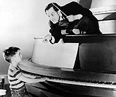 The 5,000 Fingers of Dr. T. has long been a cult favourite among a lucky few film buffs – and many lucky kids. The famous children's author Dr. Seuss collaborated on the screenplay of this magical fable, although he apparently despaired at the final result. It concerns nine-year old Bart (Tommy Rettig), rather resistant to his daily piano lessons, who is miraculously transported to a nightmare world. In this garish, Technicolour decor, the malicious Dr. T. (played by a wildly camp Hans Conreid) is gathering 500 children, under duress, to play his music on a giant piano – hence the 5,000 fingers. Only Bart, with a little help from adult companions, can liberate his fellow children from this veritable Fascist regime. As directed by Roy Rowland – an underrated Hollywood figure – the film is full of bizarre songs and extraordinary set pieces, such as when Bart whips up a contraption that sucks in people's voices. Best of all, it boasts an authentically anarchic, anti-social impulse worthy of Pee-wee Herman at his finest. © Adrian Martin June 1993 |