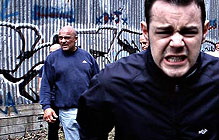 British movies and novels conceived under the influence of Irvine Welsh (Trainspotting, 1995) paint a very strange and disquieting portrait of contemporary social malaise. In The Football Factory, a gang of sports hooligans fight, swear, drink, urinate, muck about, and generally abuse enemies, friends and themselves. In another, simpler era, such lads (such as the kind we see in Joseph Losey's classic These are the Damned, 1964) would have been presented as sociopathic animals completely lacking in self-awareness. If storytellers wanted to give an optimistic twist to that tale, they might choose to lead such fallen characters through hell and back, to some fragile moment of redemption. But Tommy (Danny Dyer), the wisecracking narrator of The Football Factory, bears some resemblance to the intellectually-inclined anti-hero of Kubrick's A Clockwork Orange (1971). He brutalises and is brutalised. He knows it, and moreover can even spit out the familiar sociological analysis of his own sorry condition. But, in the face of all that, he simply does not care. He and his mates just hurl themselves into the fray, over and over. This film is also indebted to the Trainspotting legacy in the way it plunges us directly, without a reflective pause, into the amoral thrills that these unlovely characters experience. Writer-director Nick Love, adapting a novel by John King, keeps the energy on a non-stop high via frenetic editing and speed-thrash music. It is only through the inexorable structure of the piece, the way in which the events of move and counter-move set off an escalating catastrophe, that we are finally led to a bleak realisation of where it is all heading. Do not go to The Football Factory expecting to see a sports movie. It is more like a gangster film, plotting the step-by-step power-play between rival groups of barbarians. Like in Paul Morrissey's Mixed Blood (1985), this code of savage justice is dependent on factors of chance, error, and the incalculable madness of men way beyond rationality. The factory of the title is society itself, swiftly generating its own breakdown. © Adrian Martin October 2004 |