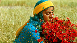 Gabbeh begins with a very distinctive sound heard underneath the opening credits. It seems to the ear to be some kind of labour – perhaps a noise produced by the action of a tool. It is rhythmic and repetitive, but arrives with a very particular phrasing: three beats followed by two beats. Three then two: a hypnotic, incantatory rhythm, but also arresting in its oddness. Though musical, it is also not-musical – just some rough sound arising in the everyday grind. The second time I saw Gabbeh – among the most sublime films I have encountered – I realised that the entire soundscape, and many of the images as well, are built on this rhythmic figure of three-then-two beats. It serves as the basis, the ground-tone, of a rich, musical score. At one moment, when that music comes flooding in, one of the central characters, Gabbeh (Shaghayeh Djoda), suddenly starts clapping the three-two rhythm. Later, there is a scene where a goat gives birth, and then, in snippets, the early phases of how a goat mother tends to its newborn; basically, she tries to nudge it to its feet. As the mother does so, she pounds the earth with her own foot, possibly to clear some ground, and as she does so the film cuts to women who are in the process of making a Persian gabbeh rug. As they work the fabric with their implements, the women make that already familiar sound, three-and-two, but it is now in perfect rhythm with the goat stamping its foot. So, the film passes back and forth for a few shots between the goats and the women, between the stamping and the rug-making. But the sounds of each activity are cut free from the action, swapped and intermingled. Poetically, the goat makes music, and the artisans are giving birth to a new rug. Gabbeh is directed by Mohsen Makhmalbaf, one of Iran’s best-known directors of the 1980s and ‘90s alongside the rather more sedate Abbas Kiarostami. Makhmalbaf is an eclectic figure. He has been described as the Iranian Scorsese (whatever that is meant to mean!), and has made many kinds of films, from the lyrically plaintive to the psychodramatically cruel. In his incredible Salaam Cinema (1995), he auditioned, like some dark ringmaster, dozens of aspiring actors from the streets for parts in an imaginary film project. It is hard to believe that the person who made Salaam Cinema also made Gabbeh – but that’s reassuring, too. We all contain multitudes! This is a profound, uplifting, magical movie. Its emotional affect is almost eerie. There are very precise instants – a cut from one image to another, the turn and look that someone gives, the beginning of a particular sound – at which I can no longer contain myself: they are like triggers to some primal part of the self, psyche, soul. It’s a truly soulful work – and I don’t say that about very many films. There’s a story here, a simple, folk, peasant story. It is a story that springs forth, literally, from a gabbeh carpet – and we see, in exquisite detail, how such objects are made, and how the people who make them live. The film starts with a nomadic couple, an old man and woman (Hossein and Rogheih Moharami), tending to their carpet in a stream. A young woman who calls herself Gabbeh steps out of the rug, comes alive to tell the story of the figures that are woven into it: the figures of herself and her lover, a guy who sits astride a white horse. We learn that, for a long time, he was her ardent suitor: ardent but discreet, because he just sits far away on the horizon at all times, howling like a wolf. That howl is another of the key sounds of the film – a haunting, funny, musical sound that fills the universe. Gabbeh wants to go with the man, but her stern father keeps putting obstacles in the way or, rather, he keeps moving back the deadline: when her uncle arrives she can marry; then she must wait for her uncle to marry; and then she must wait until her mother gives birth; and so on. Gabbeh is among the most voluptuously sad women in cinema; she is the veritable Weeping Woman. That is the key story. But the film is, in fact, full of many stories – a weave or skein of stories. All of them interact with, affect and influence each other in the most remarkable ways. Gabbeh appears from a carpet and tells her story of the past; but her story is not a flashback. It seems to be going on all around her eternally, to her left and to her right, cued by her look, and also by the sounds surrounding her: the babbling of a stream, the cry of a bird, the harsh sound of an approaching rider. And then there is the effect of this story on the people to whom she is telling it – the elderly couple. As Gabbeh tells her story of young love, the old man is moved to pieces. He falls in love with her, and begs her to run away with him. He is one of the two wonderful old men in this story made instantly childlike by love. He loves, and he cries when he feels he has been rejected: he beats the carpet as it hung out on a tree, and he wails – in fact, everything this old man says or shouts out in the film is delivered musically, in a kind of never-ending undulating sing-song that is delightful and hilarious to hear. As this old man hears Gabbeh’s story, he becomes the young man, the ardent suitor – he is possessed by that spirit. The old woman, however, does not take this soap opera of possession at all well. “You never gave me children”, he hisses at her at one point, and she runs away, vowing never to return – because he is breaking her old heart with such talk. But then she quickly returns with a baby goat, and he thrusts it in his arms, saying, “You wanted a child - here's a child”. And he instantly loves this makeshift child of theirs; he cradles it, saying solicitously, “Has it been fed yet?” This incredible flux of emotions and attachments, this constant movement between youth and old age, is one of the many things that make Gabbeh great. I have not seen a movie since Bernardo Bertolucci’s Steali