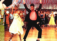 Accounts of the contemporary American teen movie look to the '70s – to American Graffiti (1973), Saturday Night Fever (1977), even Animal House (1978) – for the seminal films that shaped this modern genre. Grease (1978) is often omitted from this tally – oddly, given that it is unquestionably a teen movie, and an enormously popular one. But even on its first release, Grease never seemed exactly contemporary in any sense. It is a kitsch throwback to B grade '50s teen movies – suitably camped up as a gaudy, frenetic musical. Arriving via the stage, and often returning to it, this property has acquired the aura of being the ultimate secondary school, eisteddfod-customised teen romp. It didn't really occur to me when I first saw Grease at the age of 17 – during, as it happens, my first date – but now the actors really look way too old for their parts. Maybe this has something to do with the technological enhancements wheeled in for the twentieth anniversary re-release. But this discrepancy hardly matters – in fact, it adds to the fun. The plot is as simple as it can get – a mere skeleton on which to hang the songs and the running wisecracks of veteran comedienne Eve Arden. After a brief but beautiful summer romance, Danny (John Travolta) and Sandy (Olivia Newton-John) negotiate the tough teen turf of Rydell High. Both Danny's cool gang, the T-Birds, and Sandy's new pals, the Pink Ladies, favour a raunchy, cynical approach to life. True love, in this context, seems a distant and difficult possibility for our heroes. The lean, wiry body of Travolta in motion is a thing of beauty to behold. Next to him, Newton-John is an unfortunate advertisement for Aussie unfunkiness: her head wobbles atop her stiff body like a loose ball bearing. Her ultimate makeover into a supposedly slinky vamp ameliorates this handicap only a little. In many respects, the other true star of Grease is Stockard Channing as Rizzo. She brings great sass to her bad-girl character and smart, cheeky songs. Channing even manages to bring a little credibility and dignity to the token "serious bit" concerning teen pregnancy. Randal Kleiser's direction and Patricia Birch's choreography are both rather hit-and-miss affairs. The group numbers have the chaotic energy of such previous teen musicals as Summer Holiday (1963), while Newton-John's lilting solo ballad "Hopelessly Devoted To You" is a dreary, inert interlude. Film histories have cattily enshrined the sad fact that, in the final song, the dancers' nimble feet are occasionally below the frame line. For all its blemishes, Grease is still an undeniably enjoyable and colourful confection. If anything, the passage of twenty years has increased its allure as a camp pastiche of an imaginary, bygone era. The songs "Greased Lightnin'", "Look at Me, I'm Sandra Dee", "You're the One That I Want" and especially "Beauty School Dropout" with Frankie Avalon, are a treat. Grease may be the ultimate guilty pleasure, but it is one well savoured. MORE Kleiser: Flight of the Navigator, Honey, I Blew Up the Kid © Adrian Martin July 1998 |