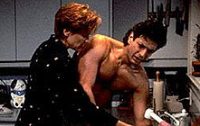 It's a funny thing, but the afterlife in Brett Leonard's Hideaway looks exactly the same as cyberspace did in his previous film, The Lawnmower Man (1992). The same rapidly cascading tunnels; the same souped-up, computer-enhanced colours; the same drama of "spirit beings" slamming up against mysteriously barred gateways to the Infinite. Also continued from Lawnmower Man is a basic dramatic premise: the supernatural clash of two men, both of whom have tasted an experience known to few mere mortals. Both family man Hatch (Jeff Goldblum) and crazed serial killer Vassago (Jeremy Sisto) have faced death and then returned to the world of the living – beneficiaries of a special "resuscitation" process practiced by a shifty Dr Jonas (Alfred Molina). Hideaway is one of the many movies nowadays designed to unspool in theatres only briefly en route to its true and fitting destination: the video shop. Videophiles will perhaps enjoy the labour of sussing out all the different films which this one pillages, combines and lightly transforms. It has the familiar kinetic style – strobe lighting cut to blaring heavy metal music – of The Crow (1994). It exploits, in a completely lurid and pointless way, the serial killer sensationalism of Natural Born Killers (1994). It drags in the hoariest cliché of the modern thriller: the spooky symbiosis of good and bad guys, rarely reinvigorated since William Friedkin perfected it in Cruising (1980). For a while, it even flags a Gothic father-daughter theme straight out of Lynch's Twin Peaks: Fire Walk With Me (1992). And, most ridiculously of all, Leonard once again shows his fondness for a last-minute introduction of flamboyant, Good vs. Evil, Christian symbolism – a trick which obviously impressed him in David Cronenberg's brilliant and much-copied Scanners (1981). What the distinguished, innovative writer Neal Jimenez (River's Edge, 1986) added to this abysmal mish-mash is anyone's guess. I am not damning Hideaway purely for being schlock – i.e., for having cardboard characters, an unsubtly expressionistic style and a less than realistic plot. I am damning it for being poor schlock. However, this film did afford me one very valuable lesson in cultural theory. From now on, whenever someone asks me what postmodernism is, I will simply reply: Jeff Goldblum. His acting style is – to put it politely – goofy to the nth degree. It is apparently impossible for Goldblum to behave straight in any dramatic frame – even one as cartoonish as this mystery-horror-thriller. With his bizarre performance-art gestures, twinkling eyes, barely submerged smirk and curve-ball ad lib lines, Goldblum gives every indication that he has already passed over into a cryptic, ironic dimension where no one can ever follow. © Adrian Martin August 1995 |