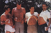 Husbands is a fascinating prelude to the work of Abel Ferrara, so many years ahead of its time: the quality of headlong narrative without exposition, with astounding, unannounced ellipses (where Cassavetes' wife comes to give them the plane passports, for instance); the visual and aural sense of being inside each event as it happens, everything in partial views, shards of space and time, time-images and crystals (such great and dynamic camera work with the camera trying to follow action but not always containing it in frame: strange, sudden lacks and elisions); the absolute, deliberate lack of, or refusal of, a moral perspective on such extreme human (mainly male) behaviour, no point or conclusion to be drawn. This is the blackest, most misanthropic of all Cassavetes' films. There's no love in it – mainly because there are no wife/lover female figures in it. This shows only one side of his feminine universe: the lonely, driven, haunted, melancholic women of the one night stand circuit, the 'night women' of bars and hotels ... Absolutely quintessential Cassavetes scene: the morning after the men's separate liaisons with women, Cassavetes and then Falk in the rain with their women, satellites spinning apart, not having understood each other or connected much at all. Complete with the Asian girl who suddenly speaks up for the first time, muttering in her own tongue. Husbands is a very intense film about hysteria: about how easy it is, when facing the alienness of any Other, to push their wrong buttons. Hysteria always looms. A comic scene exists seemingly to state this: a crazy bit with the woman convulsing hysterically with fear in Cassavetes' dentist chair. Not to mention the truly remarkable scene between him and Jenny Runacre the morning after: incredible spins from hopeful intimacy to total hysteria in her, prompted by his cold and cutting remarks. And the finale: Nick Cassavetes as screaming, obnoxious, hysterical little kid These guys are such an unlovely, repressed, ugly bunch – especially Falk and Gazzara (well used in his stolidity). Only Cassavetes himself approaches charm, but he blows it bad with Runacre. These men endlessly perform some monstrous image of who they are, what they're feeling, who they should be, what they should be feeling. And this is not such a simple alienation, for the only human, interpersonal, behavioural reality here seems to be this multi-layered performance of veils, feints, masks, try-outs: like in Falk's bathroom monologue: "What was I feeling, what was it?"; or both Cassavetes and Gazzara repeating in their pick-ups "aren't I charming?" It is this very quality of rapping the self in an endless, exteriorised performance which seems so ahead of its time, straight into the era of Scorsese, Paul Thomas Anderson and many others. There is an indelibly strong element of the grotesque – particularly with some of the women (some of the guys ain't too pretty either), such as the incredible old woman who desires Falk. Hervé Le Roux (Cahiers du cinéma no. 389, November 1986), describes the women of the film as "monsters ... a giant, a deformed woman, a gnome ... Husbands is the encounter of the imperfect, bad smelling bodies of men, fleeing everything, with woman-monsters ". Which makes it sound a bit like a Stephen Dwoskin film like Times For (1970) – and wasn't Runacre in that? There are relentless scenes of behavioural sadism: particularly the long scene of drinking and singing (even this has striking ellipses of key moments not seen or heard, some violent sections). Le Roux takes the violent demand of a woman to "be truthful" as the emblem of the film and its own relentless method, a sadistic tracking to capture the truth. But I am not so sure about this; Carney remarks (in one of his rare moments of insight) that the film is not about unmitigated freedom but the very problem of being free, of free expression. The mise en scène of certain scenes stays with me forever. Like the fantastic relations of foreground and background in wide shot during the hotel scene: Gazzara in bed at the front moving about, Falk in the middle of the shot with the Asian girl, Cassavetes and Runacre going in and out of room in the background. Or like the amazing, almost psychotic scene of domestic violence where Gazzara whacks his wife and step mother. It hits an intense level of melodrama, almost surreal as the wife's knife appears in shot, as everything escalates. In a nutshell, it's a Cassavetes diagram of the hysterical push and pull of attraction and repulsion, sadism and masochism in marital relationships. MORE Cassavetes: Faces, Minnie and Moskowitz, Too Late Blues © Adrian Martin May 1994 |