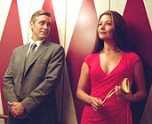 Joel and Ethan Coen are the laziest sods in the movie business. The Big Lebowski (1998) marked the turning point in their career, and also the beginning of my disillusionment with them. It was that movie which announced the levelling-out of their ambition: henceforth, their highest goal was to make comedy that aspires to be a live-action equivalent to TV's The Simpsons. What about The Man Who Wasn't There (2001)? It was ostensibly a more serious effort. Yet it merely provided proof that the Coens are pastiche artists incapable of creating material that really stretches them – or touches us. Intolerable Cruelty is not the worst film by the Coens, but it settles too easily for this facile mode of cartoon humour. They have found their supreme star in George Clooney, who is ever ready to pull a goofy facial expression or contort himself into a ridiculous posture. Miles (Clooney) is a divorce lawyer who is completely on top of his manipulative game. That is, until he meets Marylin (Catherine Zeta-Jones), a client who has more tricks up her sleeve than even he can second-guess. A strange kind of love is in the air for these two, and it is up to the audience to determine who is scamming whom. The film is full of the kitsch pop-culture jokes that fill the cracks in every film by the Coens these days – pride of place, this time around, going to the syrupy songs of Simon and Garfunkel. Billy Bob Thornton and Geoffrey Rush have amusing secondary roles. Unusually, the Coens are this time working from a script not originated by them. The slightly new element in the mix here is the fulsome homage paid to Billy Wilder films like The Fortune Cookie (1966). As in the work of the master, the comedy hinges on certain repeated gestures, like the tearing up of an iron clad pre-nuptial agreements. When the pace quickens, this manic repetition creates a few decent laughs. The biggest gag in Intolerable Cruelty involves a gun wielded by an asthmatic hired killer. Without giving the punch line away, it is truly a gag in what has come to be regarded as the Tarantino style. But this comparison is not kind to the Coens. Where Tarantino boldly reinvented himself by taking his level of achievement up several notches with Kill Bill (2003/4), the Coens are going nowhere. They keep shuffling between guns and gags, film noir homages and screwball timing, with occasionally a little undergraduate intellectualism thrown in as a topper. It's not enough. MORE Coens: Barton Fink, Fargo © Adrian Martin October 2003 |