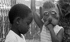between the bare-chested but strangely alienated San (Henry G. Sanders) and his