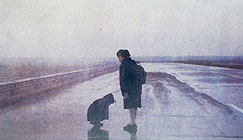 In the opening shot of Theo Angelopoulos' Landscape in the Mist, a small boy, Alexander (Michalis Zeke), and his pre-teen sister, Voula (Tania Palaiologou), emerge from the darkness and approach a spot near the camera. They stop. The camera slowly begins to circle them. She: "Are you afraid?" Boy: "No, I'm not." Suddenly they break away and walk, faster this time, towards a train station that we can now see in the distance. This one-minute take is stunning, and sets the pattern for much of what is to follow. People and vehicles doggedly sticking to their paths, oblivious to all else, sometimes pausing, sometimes changing speed; barren or dark landscapes with a single stark, prominent feature; harsh, natural sound replaced, as a scene empties out, with Eleni Karaindrou's intense music. And, above all, Giorgos Arvinitis' camera circling, advancing and withdrawing at a rhythm and with an intent always distinct from the action, always inscribing the curiosity, passion, wisdom and pathos of Angelopoulos' gaze. Such patterns give figure and form to the deliberately slim and open-ended plot events: the children run away from home and attempt to reach Germany by train to find a father who may not exist, encountering strangers helpful or menacing along the way. Landscape in the Mist is a bleak but exultant road movie somewhere between Roberto Rossellini's post-war chronicles of fragmentation and Chantal Akerman's landscape-centred panoramas of a hollow New World Order. (Akerman's production company was involved in this film.) Almost nothing ever connects in these unnamed spaces and places between Athens and the German border: as Voula and Alexander stand in a courtyard, in front of them a tractor unhitches a dying horse, and behind them a wedding party exits frame, singing and dancing. Only in the tentative relationship between Voula and travelling player Orestes (Stratos Tzortzoglou) does the image begin to hum with the tension of attraction and repulsion. But only for a precious, little while: once again these children will walk, pause, and walk away still faster down an endless highway, as the camera lifts high into the cold air and Orestes waves a forlorn farewell twice, to no one. MORE Greek cinema: A Touch of Spice, The Very Poor Inc., A Song is Not Enough © Adrian Martin March 2003 |
