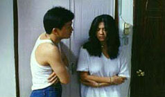 Edward Yang's Mahjong disappointed some devotees of his earlier work, but for me – as a newcomer to Yang at the 1997 Rotterdam Film Festival – it was an utter delight. This acidic comedy of sexual and monetary manners runs on some cruel fuel – particularly in its depiction of the myriad ways in which cocksure men exploit gullible women – but everything, including initial positions of class and gender, comes around for reversal and debunking by the end of the twisted tale. Yang's style is a beguiling mixture of virtuosic mise en scène, dexterous mood-switching, intricate multi-character plotting, and an almost clunky amateurishness, particularly in relation to some of the performances. But, for me, this unstable brew creates a potent charm – and who can forget the sight of a sooky young male crying non-stop for about the last quarter of the film, solely because he finally relented and let a woman kiss him on the lips? MORE Yang: Yi Yi © Adrian Martin March 1997 |