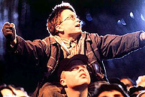 The 1980s bequeathed a strange formula for popular entertainment. All those sentimental films about the power of imagination, dreams-come-true and the possibility of miracles in everyday life took an odd, almost perverse turn. The logic seemed to be this: in order to eventually show the magnitude of sublime redemption, it is first necessary to ground a story in the most hideous, miserable, downtrodden realities. So, suddenly, every family unit in supposedly feel-good movies was torn apart by malaise, abuse or divorce; every gifted, small kid was struck down by massive illness or injury; and communities faced the wholesale demolition of their fragile way of life. Steven Spielberg is to blame for creating this formula in E.T. (1982), but even he probably did not foresee the grotesque lengths to which it would be taken in films such as Cocoon (1985), Batteries Not Included (1987), Radio Flyer (1992) and Roberto Benigni's Life is Beautiful (1997). In Funny Bones (1995), director Peter Chelsom showed he was already expert at mixing drab realities with ecstatic highs – while tempering the saccharine tone typical of Spielberg with an eccentric, laconic, very British sense of humour. The Mighty is a much more mainstream, Hollywood proposition, but at least it parlays the misery-meets-miracles formula with great skill, effectiveness and warmth. The film's title has been nonsensically shortened from that of Rodman Philbrick's novel Freak the Mighty – a name that designates the dual identity formed by the union of the big, silent, frightened Max (Elden Henson) and the sassy, brilliant but sickly Kevin (Kieran Culkin). With Max's body and Kevin's mind, this team can walk high and conquer anything, including all the bad, tough dudes in the schoolyard and streets. Kevin teaches Max to emulate the lost, mythic ideals of King Arthur and his knights – chivalry, honour, honesty, questing. This is the magical dimension which allows Chelsom to cross-fade between tawdry, urban slums and misty forests where fearless warriors are backlit with dappled sunlight. It's corny, predictable, shamelessly manipulative stuff, but nonetheless it works. Once a dreams-come-true movie has evoked some very ugly, thorny areas of true-life experience, it then expends most of its energy trying to flee the implications of these hot topics. The Mighty is no exception. This boy's-own fable winds up being essentially about Max's evil father, and the melodramatic crisis that his release from jail catalyses. It is here that Chelsom and screenwriter Charles Leavitt most desperately reach for the handy balm of magic and wishful thinking. The Mighty is distinguished from run-of-the-mill, contemporary fairy tale fare by the rough charm of its vignettes and details. Harry Dean Stanton and Gena Rowlands are superb as Max's gruff but loving grandparents, while Sharon Stone shines as Kevin's seemingly unflappable mother. While these three actors are under-utilised, Gillian Anderson from The X-Files is awarded a perfect cameo in a highly atypical and surprising role. Chelsom effortlessly wrings tears from moviegoers – in the triumphant moments when his characters overcome all odds, and in the sad moments when the weight of the world asserts its inevitable crunch. For all seekers of cheap emotion, it is a must. MORE Chelsom: Hear My Song © Adrian Martin June 1999 |