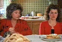 My Big Fat Greek Wedding proves one thing to Australian audiences. It is not only Australians who make superficial comedies about Greeks who are deemed eccentric in Anglo countries for eating smelly, exotic sandwiches in the schoolyard or sporting ostentatious columns outside their homes. It is a strange film industry which touts a movie co-produced by Tom Hanks as a brave little 'independent' success. My Big Fat Greek Wedding is written by its star, Nia Vardalos. She plays Toula, initially a sad frump who lives with and works for her parents, Gus (Michael Constantine) and Maria (Lainie Kazan). But true love, sparked by Ian (John Corbett), transforms Toula. She is soon hurled into the complications of a cross-cultural marriage. There's not much plot in this movie, but it knows what the mass audience dearly wants to see: every step that leads to a wedding. This is a formulaic romance, with some nice vignettes concerning family life. But Vardalos' story also harbours an odd note of misanthropy. Toula's rage and shame at being part of a culture that regards women as "eating, breeding machines" is vented at length. And the all-American alternative, as embodied by Ian's cold, vacuous parents, is rendered even less attractive. Of course, this is a story of reconciliation, of accepting one's cultural legacy and integrating it into the changing conditions of a new world. Unfortunately, the Greekness of the extended Portokalos family is given no substance or soul whatsoever. Director Joel Zwick is content with the most obvious stereotypes and clichés: bouzouki music, lots of food, kitsch ornaments, and a mad grandmother dressed eternally in black. Actors of many national backgrounds get their shot at exaggerating Greek accents and hand gestures. Naturally, in a comedy, such superficiality is fairly acceptable. And, on a basic level, this film entertains in exactly the way it intends to. But putting it next to a classic about family life like Vincente Minnelli's Father of the Bride (1950) or a canny portrait of cultural manners such as Ang Lee's The Wedding Banquet (1993) shows how unambitious and unexciting Vardalos' crowd-pleasing project really is. © Adrian Martin October 2002 |