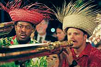 Even the trashiest comedy has to possess a little bit of charm – some quirk, some sensibility, some piece of behaviour that is loveable. Between National Security, a vehicle for Martin Lawrence, and the Australian shocker Horseplay (2003), it seems that charm has fled contemporary comedy. National Security ineptly revisits the territory of the 48 Hours movies (1982, 1990) starring Eddie Murphy. Earl (Lawrence) and Hank (Steve Zahn) are both bounced out of the police force and into the lowly sector of security. They make a quarrelsome couple, with Hank's short-fuse anger fanned by Earl's constant whining about racist attitudes. "Do you believe the crap that comes out of your mouth?" asks Hank after yet another of his partner's diatribes about the "subjugation of the black people". "I don't know," replies Earl thoughtfully, "until I've finished saying it." And that is what passes for witty dialogue in this dire film. Almost as an afterthought, director Dennis Dugan (Problem Child, 1990) wheels in the machinery of an action-thriller plot. This involves familiar figures from crime cinema, like Bill Duke and Eric Roberts, standing around and looking tough. The obligatory chases and explosions are listless. National Security's attempts to be topical and political make Fat Pizza (2003) look like Bertolt Brecht. Clumsy gags about police violence – an issue the film never takes seriously – are overwhelmed by endless scenes of Lawrence showing off his supposed powers of seduction before every woman he meets. As for Zahn, this film represents the nadir of his eccentric career. MORE Dugan: Evil Woman © Adrian Martin May 2003 |