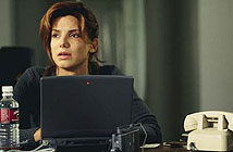 The moment that popular cinema temporarily exhausted the imaginative possibilities offered by virtual reality gizmos, the time came for a rash of films about another fad of the computer age: the internet. Judging by this thriller by Irwin Winkler, however, no one has quite figured out yet how to turn nattering on the Net into a satisfying cinematic spectacle. The Net begins engagingly in a low key. Angela (Sandra Bullock) is a systems analyst and a devoted participant in internet conversations. Computer nerds, it seems, are not all of the male gender; Angela displays many of the already classic character traits of the Net-nut, including a profound tendency towards anti-social withdrawal. Angela's isolation turns out to be integral to the film's plot; even her mother (Diane Baker), suffering Alzheimer's disease, cannot identify her. Testing out a new system, Angela one day finds herself on the information-trail of an awesome conspiracy involving corruption, fraud and murder. Worst of all, once the culprits detect Angela's snooping, they include her within the conspiracy. Using every sneaky resource of modern telecommunications, the largely anonymous villains wipe out all traces of Angela's real identity, and proceed to frame her with a new one. Once it gets into stride, The Net strongly resembles a typical '70s-style paranoid thriller, such as Sydney Pollack's Three Days of the Condor (1975): the lone, righteous individual struggling against a shadowy establishment that knows everyone and can manipulate anything. Only the appearance of the suave and ambiguous Devlin (Jeremy Northam) as Angela's love interest – his name is surely a nod to Cary Grant's role in Alfred Hitchcock's Notorious (1946) – aligns the film with such intimacy thrillers of the early '90s as Sleeping With the Enemy (1991). This is a routinely exciting, but not very thoughtful or compelling film. Winkler (Guilty by Suspicion [1991], Night and the City [1992]) does what he can to beef up the hi-tech high jinks. Where every article about the internet in the mid '90s whined about the slowness of the process, Angela suffers no such problem: she can infiltrate any computer system like quicksilver. At any rate, the spectacle of Bullock bashing keys, speed-reading screens and inserting discs is a great deal more captivating than the ordeal of watching clunky astronauts frantically fiddling with switches in Apollo 13 (1995). MORE Winkler: At First Sight, De-Lovely © Adrian Martin September 1995 |
