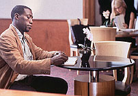 As someone who publicly dissented on the general valorisation of Mike Figgis' Leaving Las Vegas (1995), I was not terribly favourably disposed towards the prospect of seeing his subsequent effort, One Night Stand. After a paddle in the low-life shallows of alcoholism and prostitution, Figgis here returns to a milieu that, judging from his previous work, is more familiar to him: supermodels, dancers, TV ad directors, even a stray, glamorous rocket scientist. Figgis firmly places himself within dramatic terrain that is these days ascribed, rather unkindly, to the bourgeois novel: infidelity, marital breakdown and intimations of mortality among the members of the leisured middle-class. On a brief trip to New York, Max (Wesley Snipes) attempts to rekindle his lost friendship with Charlie (Robert Downey Jr.), a flamboyant gay who is struggling with the spectre of AIDS. What Max did not anticipate is the sudden, fleeting presence in his life of Karen (Nastassja Kinski). Events hurl these two married people into a one-night stand that seems to stun them both with its power and tenderness. But they return immediately to their less than wonderful daily lives. Where Karen's husband Vernon (Kyle MacLachlan) is a stolid, dull, professional type, Max's wife Mimi (Ming-Na Wen) is noisy and bossy – particularly (as a hilarious scene shows) in bed. The plot seems strangely discombobulated until Figgis reveals the ultimate destination of these various strands. Max races to Charlie's side in his hospital death bed – only to discover that Vernon is his brother. Confronted once more with Karen in this impossibly tense and desperate situation, Max must face his own future. And so, as it turns out, must every other character. Not to put too fine a point on it, Figgis' typical style and sensibility repulse me. His films place the viewer right inside a dated yuppie nightmare: the world looks like a slick deodorant commercial and sounds like a bad jazz combo. Figgis also has the unerring ability to reduce classic dramatic moments – such as the moment when people first become romantically attracted to each other – to the most mechanical and inauthentic of clichés. One Night Stand is full of terrible, phoney material of this kind. Yet, miraculously, the interweaving of Max's and Karen's one-night stand and its consequences with the slow disintegration of Charlie manages to triumph over the dross. Perhaps this is because, in these scenes, Figgis manages for once to drop his misty camera filters and overbearing saxophone riffs, simply concentrating instead on the expressions of his actors. Performance-wise, Figgis' films are always uncomfortable smorgasbords. Amidst all the pointless celebrity cameos, overheated stylistic tricks and general air of speciousness, the actors (as in Woody Allen's films) must fend for themselves, with inevitably mixed results. Here, MacLachlan and Wen are hobbled with poor roles while Snipes, clearly ill at ease, struggles with moments of improvisation and into-camera address. While Kinski fares best in the central quadrangle, the film really belongs to Downey. After an inauspicious opening scene – where he postures as a supposedly visionary choreographer and baits the hapless Snipes with such lines as "are you out yet?" – he hits his stride. Downey lends dignity to the spectacle of dying and gives certain unlikely scenes – such as one where he awakes to find Max and Karen smooching near his bed – complete credibility. Even Charlie's homilies about the ultimate meaning of life are made palatable – and in a Mike Figgis film, that is a true achievement. MORE Figgis: Time Code © Adrian Martin April 1998 |
