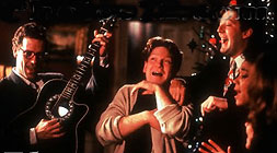 Peter's Friends is a contrivedly jolly and bittersweet affair from actor-director Kenneth Branagh. It borrows a great deal from The Big Chill (1983), including character stereotypes and key plot moves. It's unfair to criticise the film for being so brittle and superficial, since Branagh tells you as much in the first line of voice-over: here is a group of self-absorbed, upwardly mobile people bound together not by love or political commitment or shared cultural interests, but purely and simply by mutual embarrassment. It is a painless, sometimes amusing viewing experience, kept busy by Branagh's undeniable directorial skill. The story mostly stays at a level of sexual farce and catty comedy of modern manners, until a rather awful attempt at topical solemnity kills the final scene. Among the bright ensemble cast, Emma Thompson and Imelda Staunton impress, while comedian Stephen Fry as Peter puts a brave face on that unpardonable movie cliché – the sad, foppish homosexual who never has sex with anyone. MORE Branagh: Dead Again © Adrian Martin December 1993 |