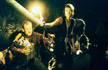 Sometimes, watching a taut, modest horror or sci-fi movie provides more truly avant-garde thrills than an entire season of Eat Carpet on SBS TV. Films such as Abel Ferrara's Body Snatchers (1994) use their extravagant plot elements as a handy excuse to merrily violate the conventional codes of Hollywood production. Pitch Black also works this way. An American production shot in Coober Pedy, its barrage of trippy visual effects recalls such contemporaneous mind-benders as Three Kings (1999) or Fight Club (1999). But instead of making grand statements about war, society and identity, this film is content to spin a story from random elements of Alien (1979), Jurassic Park (1993), Predator (1987), The Silence of the Lambs (1991) and numerous other successes. On one level, it is a shamelessly trashy and opportunistic patchwork, akin to the prolific Z pictures of Albert Pyun (Adrenalin: Fear the Rush, 1994). A spaceship, piloted by Fry (Radha Mitchell), crash-lands on a forbidding planet. Only human remains, a mysterious astronomical display and the menacing underground activity of a clan of bird-like predators hint at the problems facing our motley crew of survivors. Fry finds herself uncertainly poised between two men: Johns (Cole Hauser), a laconic law enforcer, and the bad guy locked up in the spaceship's hold, Riddick (Vin Diesel). Like Hannibal the cannibal, Riddick has a gift for psychological manipulation and a relish for murderous perversity. But setting him free seems the only way to ensure group survival on this alien terrain. The various national accents, whether real or faked, fly about in a Babel of confusion. The unevenness of the acting matches this odd, unreal texture – from Mitchell's rock-solid, tough-girl presence to Lewis Fitzgerald's irritatingly campy turn, reminiscent of Dr. Smith from Lost in Space. But this is not a film about people, ideas or credible, imaginary worlds. It is almost purely about light and dark. On this scorched earth, the continual presence of three, burning suns keeps the winged predators underground. Unfortunately, a string of nearby planets are about to line up for an eclipse. Directed and co-written by David Twohy (The Arrival, 1996), this is, in its proudly schlocky way, a vigorous and inventive film. The surprise factor rules, whether on the level of plot and character, or in the marvellous split-second revelations allowed by the constant play of light-flares amidst pitch blackness. Riddick's voice (a low growl) or the zany point-of-view shots (what the killer birds see in the dark) never fail to jazz up proceedings. All the suspense and horror – and the film generates considerable amounts of both – depend on the precarious ability of the characters to strike up a light and keep it burning. Just as cinema itself (camera and projector alike) depends on the power and gift of illumination. Pitch Black is simultaneously a no-nonsense entertainment and a formalist-minimalist gem. MORE Twohy: The Chronicles of Riddick © Adrian Martin May 2000 |