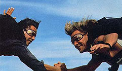 In 1990, perhaps the only film to rival Goodfellas was Kathryn Bigelow's kinetic, subversive story of a female cop, Blue Steel. Focusing on the dark side of the male psyche, Bigelow (like Scorsese with Cape Fear [1991]) obviously aimed for a greater commercial success with Point Break, starring Keanu Reeves and Patrick Swayze. Those viewers and critics who found the plot of Blue Steel somewhat improbable will likely be dumbfounded by Point Break. The film has what Hollywood parlance refers to as a high concept – an outlandish but arresting central premise. Swayze plays Bodhi, a surfer with a Zen mystical bent and a knack for elaborate bank heists. To unmask and capture him, rookie cop Johnny Utah (Reeves) must go undercover as a loose-limbed surfing dude. As even the character names suggest, Point Break is something of an adolescent, comic book fantasy. But Bigelow has serious themes on her mind. Her film vividly explores the "macho death wish" inside men, as Bodhi and Johnny play dangerous games with waves, guns and unopened parachutes. In a Bigelow movie, there is always more emotion and energy than logic. Point Break's fast and furious action set-pieces are worthy of anything directed by Scorsese. And, in its own unique, cheesy way, the film is a compelling instance of pulp poetry, akin to the most colourful works of Pop Art. MORE Bigelow: Wild Palms, Strange Days, The Loveless, Near Dark © Adrian Martin December 1991 |