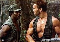 Arnold Schwarzenegger's action vehicle Predator leaves one dumbfounded. On a superficial level, the film is easy to forget. There is nothing exceptional about its story or its characters – a platoon of commandos on a Rambo-like mission into the Lain American jungle. In fact, when the film tries for conventional dramatic effects like pathos or moral complexity, it fails rather miserably. The fascination of Predator lies elsewhere: purely in the strangeness of its special effects and in the way it stages violent action. In a genre film like this, where one is fully aware of its predecessors and competition, everything rests on the twist that can be worked in – the novelty element. Often this novelty arises from the way two different formulae are crossed – a phenomenon known as the mutant genre film. The term is very appropriate to Predator, considering that what starts out as a post-Vietnam war saga ends up as a mind-boggling variation on sci-fi horror films like Alien (1979). It has often been suggested that contemporary American horror films (such as The Believers, 1987) play out, in an unconscious fashion, that nation's deep-seated fear of other races, cultures and beliefs. The monster or evil figure is that dark neighbour who carries the threat of being different, not quite comprehensible. Predator turns this Freudian-Marxist line of interpretation into a completely literal plot premise. Once again, popular culture reveals itself to be smarter and more playful than its analysts. Schwarzenegger's presence allows a few more strange mutations to take place inside the film's most inventive scenes. I am not among those who automatically dismiss Schwarzenegger as an actor. He is a charismatic figure who sometimes exhibits a very knowing self-irony. That marvellous film The Terminator (1984) established Schwarzenegger as man and machine; Predator separates Schwarzenegger from his own movie image and forces him to do battle with it. Indeed, the chief delight of this film lies in the way it renders Schwarzenegger quite impotent in the face of the dexterous Predator. Their tactical positions slowly reverse themselves in the course of a long struggle: as the Predator becomes more visible, more real in some sense, Schwarzenegger has to coat himself totally in mud to blend with the surrounding jungle. This is a neat structure which delivers a great pay-off. The makers of Predator have no doubt been listening to all those pundits who complain that modern horror or sci-fi films are all special effects and no content. Here, too, the movie goes one better than its competition by exaggeration right over the top. For the most part, the Predator is quite literally a shimmering video special effect. And his synthetic point-of-view shots come complete with a visualised, pulsating soundtrack. Rarely has a screen monster been so completely identified with and absorbed by the high technology of the filmmaking apparatus itself. Predator is no real contender for the great movies of 1987. But for anyone truly concerned with the forever mutating state of popular art, it is a minor revelation. MORE McTiernan: Last Action Hero, Basic © Adrian Martin August 1987 |