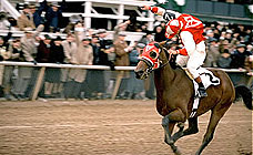 This bizarre movie made me realise with a jolt that there are two very distinct kinds of horse operas – those fashioned for women and those designed for men. The woman's horse movie has never changed. It follows the model of National Velvet (1944), usually centred on a young girl's dream of freedom and her family life. But the modern man's horse movie is no longer a good, old-fashioned Western. It is a full-out weepie of male redemption snatched from the historic jaws of defeat. The Horse Whisperer (1998) was, in this regard, only a warm-up for Seabiscuit, a wild success in America. This new film spins a humble, real-life story into an epic mosaic of loss and triumph. Seabiscuit packs a quadruple whammy. First there is Seabiscuit the horse, "trained to lose" and abused in his childhood. Then there is the horse's owner, Charles (Jeff Bridges, largely reprising the type of role he played in Coppola's Tucker: The Man and His Dream [1988]) – an entrepreneur who has lost his fortune and his winning touch. Then there's the melancholic trainer, Tom (Chris Cooper), remnant of a simpler time. Then the wild, young rider, Johnny (Tobey Maguire), abandoned by his parents when they hit hard times (oddly, they disappear from his life and from this film altogether after the anguished farewell). And last but not least, the nation of America itself, struggling with the blow delivered by the Great Depression. Can a horse race bring all four entities back to the top? It is on this feel-good premise that writer-director Gary Ross has calculated his blockbuster. Of one thing he seems absolutely certain: no women, beyond one or two very marginal figures, are going to be allowed into this orgy of comebacks and raised spirits. It is a spectacle for men only. For once, the poster image perfectly encapsulates the movie: a man and his horse form the perfect, loving couple, the height of mutual empathy, caring and sensitivity. For much of its long (129 minute), slow running time, I found Seabiscuit frankly unbearable. Ross proudly takes what is most odious from the cinema of Steven Spielberg and creates his own sickly sentimental universe. Every line, every gesture, is heightened as if in the process of being memorialised for the ages. Golden light suffuses landscapes and faces, orchestral music swells at every possible occasion, the camera moves in at a low angle to desperately underline the weight and significance of events. And let's not forget the film's direst element: a Ken Burns-style documentary, mingling archival stills and a solemn, educational voice-over narration, which is interjected at regular intervals throughout the story. Rarely has the spectacle of American self-importance been writ so large as here. Yet, for all that, Seabiscuit is an event-movie which has a way of ensnaring even the most jaded, cynical viewer. Perhaps this has something to do with the effort that Ross has put into the racing scenes. By devising a plot that demands of Seabiscuit that he "give the eyeball" to his equestrian competition before summoning up that final sprint, the races actually become compelling drama. And let's not forget the populist hook. Seabiscuit, you see, is "the people's horse". Standing as he does for the hopes and dreams of an entire (male) nation, he can draw a crowd of ordinary folk to the racetrack like no other nag. So this is a cue for Charles to stride across sports stadiums demanding that space be made available not just for elite spectators but also Seabiscuit's adoring mass public. Ross here parlays the great, time-honoured Hollywood trick known in the trade as audience-product bonding. It is not enough to simply have a stirring climax or a happy ending. The assembled cinema audience likes to see itself reflected on the screen. Therefore, the sight of a horde of ordinary people going ape over Seabiscuit's last stand has a good chance of whipping up a like frenzy in the multiplex. Judging by Seabiscuit, this old, manipulative trick still works wonders. © Adrian Martin November 2003 |