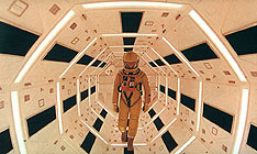Some retch and others laugh as Anthony Hopkins removes and cooks the brains of a still awake but increasingly incoherent Ray Liotta in Hannibal (2001). It's a good scene, but not a patch on its model: the slow, inexorable descent of the computer HAL into childlike babbling and singing as the irate Bowman (Keir Dullea) unscrews his circuitry in Stanley Kubrick's immortal 2001: A Space Odyssey (1968). Kubrick was notorious for planning and controlling every aspect of the theatrical release of his films. He is no longer around to continue the campaign, but at least the title of this futuristic extravaganza ensured its re-appearance at the appropriate date. In any time, it is a welcome big-screen event. 2001 has sometimes been bemusedly or angrily described as an obscure work. It certainly makes demands on the audience, and its finale (situated physically on Jupiter but metaphysically "beyond the infinite") is a seriously trippy violation of every rational law of time and space. Its basic outline, however, is easy to follow. The ambition of Kubrick and famed SF writer Arthur C. Clarke is frankly grandiloquent: they propose a version of the evolution of humankind, from the primitive ape stage to our current mastery of technology, and then past this to the result of our encounter with alien life forms. The cherished notion of our free will holds little sway in this mind-boggling odyssey. Indeed, just about any reassuring form of humanist philosophy is displaced by Kubrick, who takes a cosmic view of proceedings. Although not quite as cold as some have charged, 2001 is definitely a paean to the poetry of machines. Lovely scenes of spacecraft hovering and docking are the closest we get to old-fashioned sexual congress. More important than anything it shows or suggests, however, is 2001's status in 1968 and still today. Quite simply, it is the most expensive avant-garde movie ever to storm the mainstream. Kubrick's risk in making it was immense: this long, slow, often silent movie whose most intriguing character is a sneaky computer, and whose plot lurches from one epoch or planet to another, plays by none of Hollywood's rules then or now. As a purely visionary experience, it is up there with the greatest works of Andrei Tarkovsky or Sergei Paradjanov. Its special effects have not aged, and most of the superficial aspects of its futuristic prediction pass muster. Only in one major area has the Kubrick-Clarke knack for seeing into our present badly failed. Their imagined world is a quaintly Anglo-centric place, and also one in which women play virtually no role. In a sense, this is part and parcel of Kubrick's particular mind-set in the '60s and '70s. It is not incorrect to speak of 2001, in the old-fashioned way, as a film about the fate of Man. Its guiding image of an erect monolith, and its central hero who passes through death in order to be mystically reborn, is a boy's-own fantasy on an awesome scale. But who are we, today, to deny Kubrick his right to this fantasy? When the result is this great, then grumbling ideologues must retire to the shadows and let the artists do their stuff at centre stage. MORE Kubrick: Eyes Wide Shut, A.I.: Artificial Intelligence, Full Metal Jacket © Adrian Martin March 2001 |