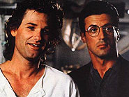 Russian director Andrei Konchalovsky has had an unusual career path since relocating in America, moving from whimsy to pretentiousness, sentimentality to gross physicality – often within the same film. After such highly-wrought assignments as Runaway Train (1985) and Shy People (1987), this one is light entertainment in an overworked formula – Sylvester Stallone and Kurt Russell as mismatched buddy cops set against the baddies and the system alike. The violence is agreeably cartoonish, and Konchalovsky has clearly learnt expert lessons from the films of John Carpenter, Walter Hill, and the Chinese action-comedies of Jackie Chan. Perhaps the most intriguing aspect of the film is its knowing but nervous running gags about the racial tensions in America's melting pot society, and the uneasy heterosexual masculinity of the heroes – particularly when they're taking showers together or dressing up as women. Postscript: According to some sources, Konchalovsky in fact quit the production, and it was directed (uncredited) by Albert Magnoli (Purple Rain [1984], Street Knight [1993]). MORE Konchalovsky: The Inner Circle, Lumière and Company © Adrian Martin June 1992 |