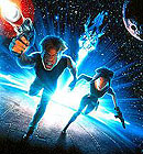 This odd sci-fi epic takes a stab at crafting a movie somewhere between the typical Disney or DreamWorks animated fare for children and the adult sophistication of Japanese anime. That means it includes some mildly risqué sexual references and slightly more intense violence than the usual G-rated American cartoon feature. In just about every respect, however, this lumbering contraption directed by Don Bluth (An American Tail, 1986) and Gary Goldman has a regressive, old fashioned feel – beginning with the square jaws of its he-man hero. Even script input from Joss Whedon (Alien Resurrection [1998], TV's Buffy) fails to bring this epic alive. On the technical plane, spectacular set pieces uneasily mingle with lax lip-sync and a mediocre selection of middle-of-the-road rock tracks. The plot is pure boy's own stuff. Cale (voiced by Matt Damon) spends his childhood and young adulthood pining over his Dad – Mum never even rates a mention – after Earth is destroyed by the evil Drej. His spirit is almost crushed as he labours in a floating sweatshop strangely reminiscent of the outer space civilisations once mocked by Chuck Jones in his cartoons of the '50s. But then Cale is conscripted for the revolution by Corso, an older brother-figure and Akima (voiced by Drew Barrymore), the type of shapely, sassy babe familiar from every video game designed for male adolescents. In this as in most respects, Titan A.E. seals its fate as half of a future double bill with Battlefield Earth (2000). Paradoxically, science fiction – particularly as created by Americans – displays an especially acute insensitivity whenever it tries to depict foreignness. There is an attempt to give the Drej their own language but, miraculously, earthlings seem to be able to read their subtitles as easily we can. The revolutionaries' helpers are a fanciful bunch of benignly alien mutations of fish, bug, kangaroo and bird – but, in the hierarchy of the action, they are completely dispensable creatures. This myopia, finally, extends to anyone or anything non-American. In this tale, a 'drifters' colony' called New Bangkok contains, beyond the heroes, only a few token Afro-American faces. There is no trace of the slightest language, culture or sensibility beyond this constricted American norm. At its most solemn, Titan A.E. transforms the standard Star Wars galactic epic into a fully blown Adam and Eve myth, as Cale and Akima strive to create a new Earth. It is a pity that Cale's goal comes to resemble an expanded version of his origins: the entire planet, it seems, will one day be a giant Colorado. MORE Bluth & Goldman: Anastasia © Adrian Martin January 2001 |