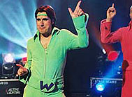 Nick Giannopoulos' The Wannabes, we are proudly told, premiered at New York's prestigious Tribeca Film Festival. Might this have had something to do with the fact that Felix Williamson's turn as American film star Bill Gennaro bears more than a passing resemblance to Bob De Niro – the founder and eminence grise of that festival? Be that as it may, the thought that this pathetically bad comedy represented Australian cinema overseas, even for a fleeting ninety minutes, is enough to plunge any local moviegoer into despair. Giannopoulos, in a bold and rather unwise career move, has dropped the wog humour. What's left? This film has the merest trace of a good idea: a rotten troupe of kids' performers – actually a criminal gang trying to crack a mansion – become an enormous hit. Only our hero Danny (Giannopoulos) has a vaguely earnest, moral viewpoint on proceedings. Most of the topics for humour in this film already seemed old-hat when they appeared on television shows like The Comedy Company fifteen years previously. So we get flat gags about Flashdance (1983) and disco, kung fu (which Giannopoulos confuses with Tai Chi), and drama class exercises. The film's leaden attempts to join the trash comedy fad are excruciating. As a debuting director, Giannopoulos makes Yahoo Serious look like Friedrich Wilhelm Murnau. Desperately mugging actors stand stiffly in front of a camera, and that's about it. Almost one third of the movie bogs down in a particularly ugly set. Composer David Hirschfelder takes the dreaded genre of tinkly, upbeat "comedy music" to its ghastliest height. Anyone interested in studying the depiction of gender in Australian popular culture will, alas, have to spend a bit of time with this shocker. It would take extensive psychoanalysis to figure out Giannopoulos' warped views of male and female sexuality, especially whenever gays or Asians enter the frame. © Adrian Martin September 2003 |